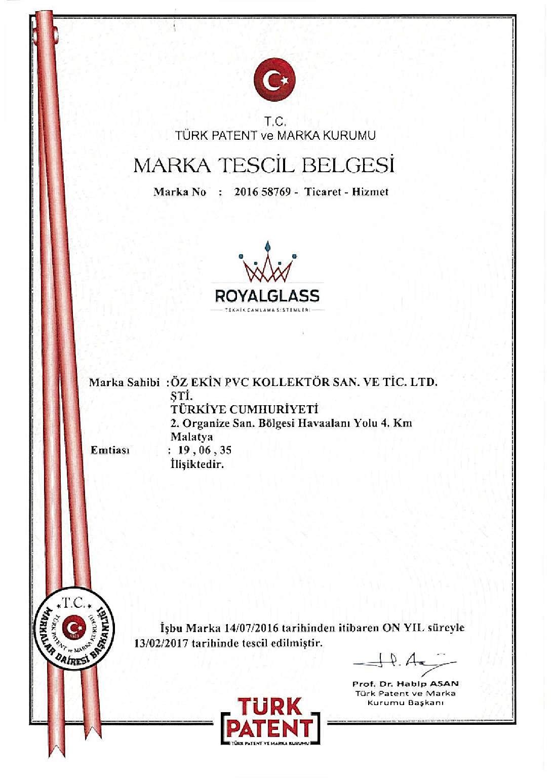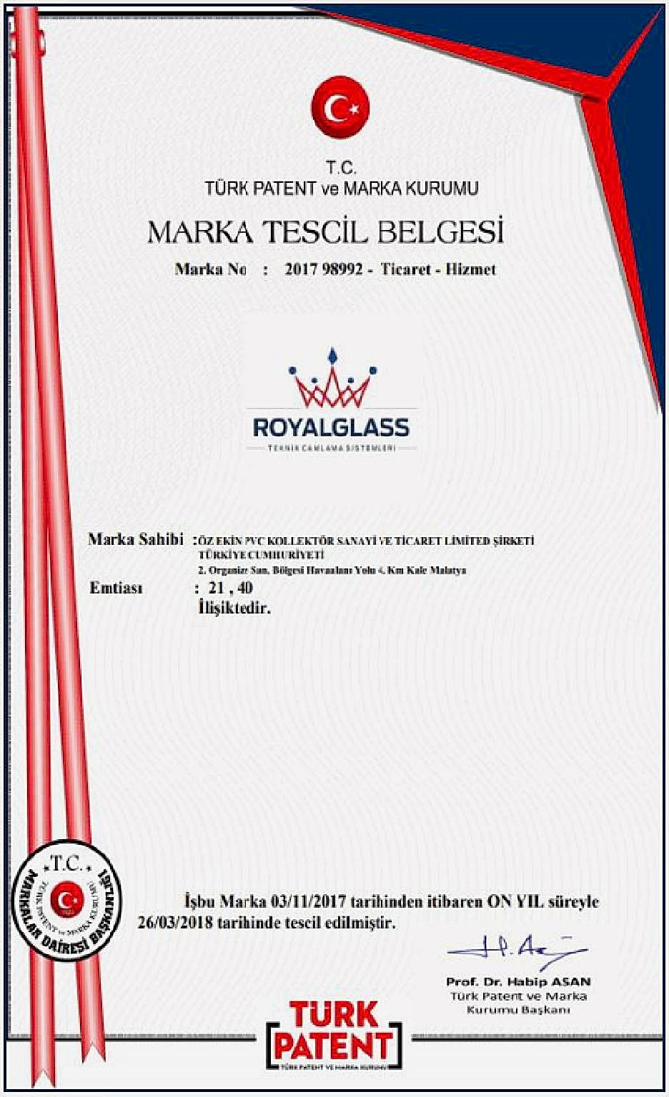 Royal Glass Sertifikaları